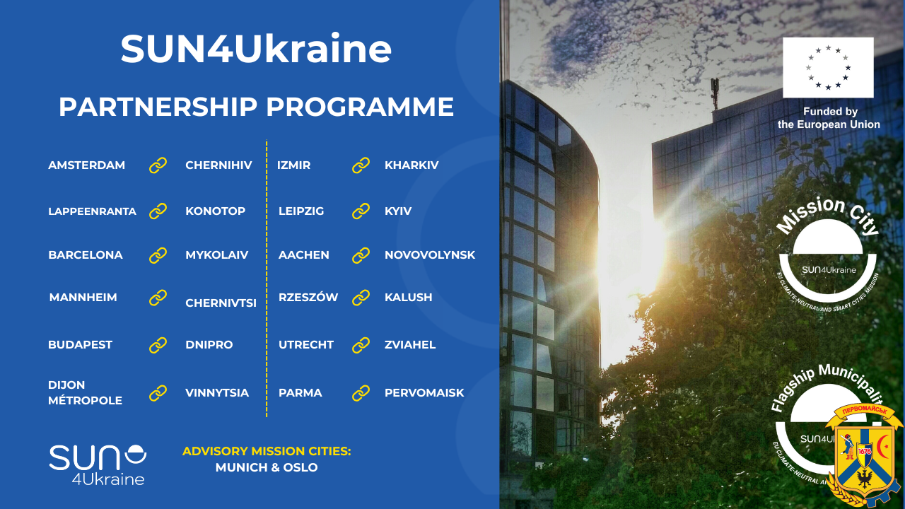 12 Флагманських муніципалітетів об’єднали в пари з 12 Містами Місії, щоб налагодити зв'язки та просувати інноваційні рішення у сфері кліматичної нейтральності.