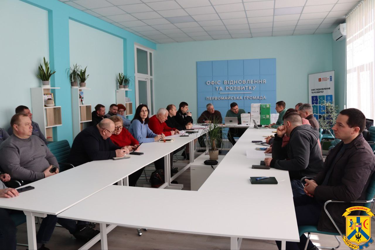 10 лютого 2026 року в Офісі відновлення та розвитку Первомайської міської територіальної громади відбулася зустріч із розгляду тендерних пропозицій на закупівлю робіт з реконструкції водогону від існуючих резервуарів чистої води ОСВ-1 до насосної станції