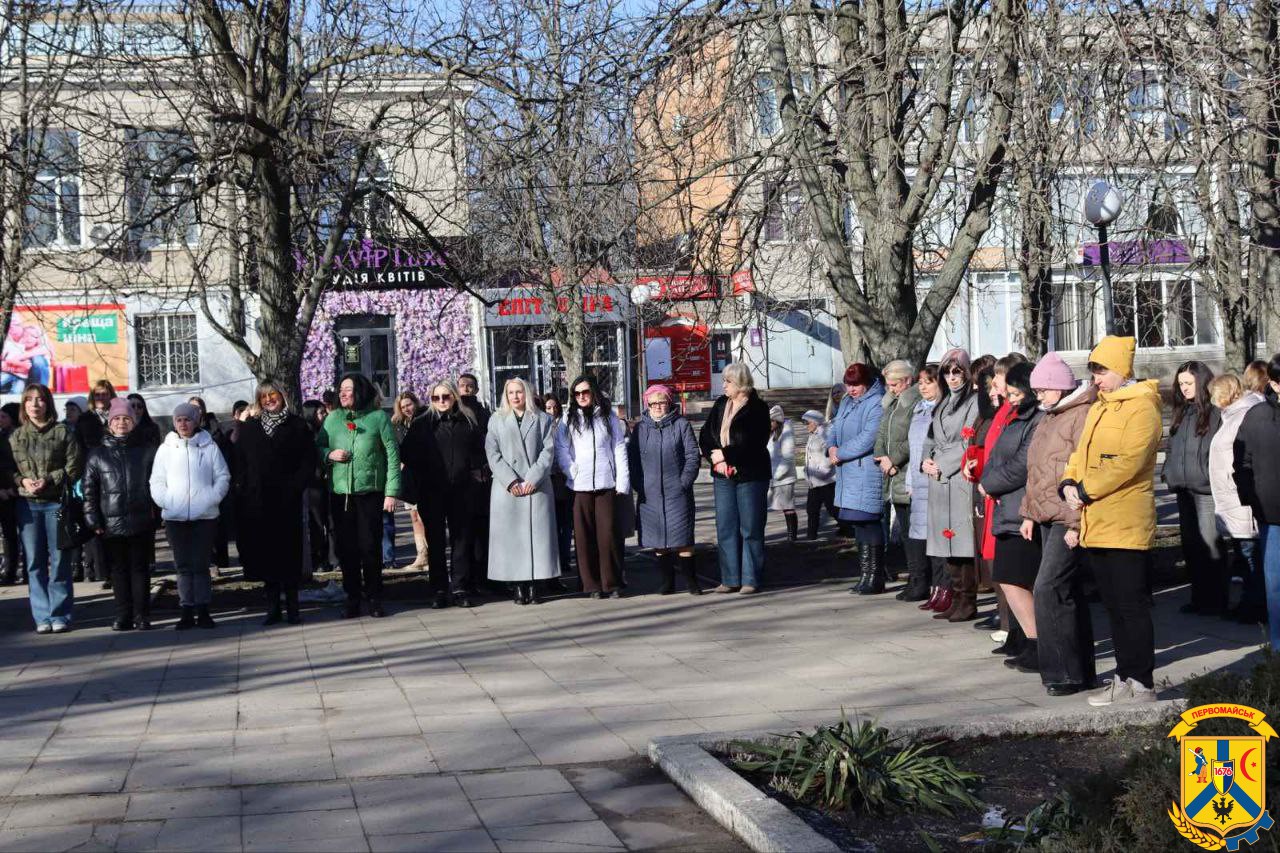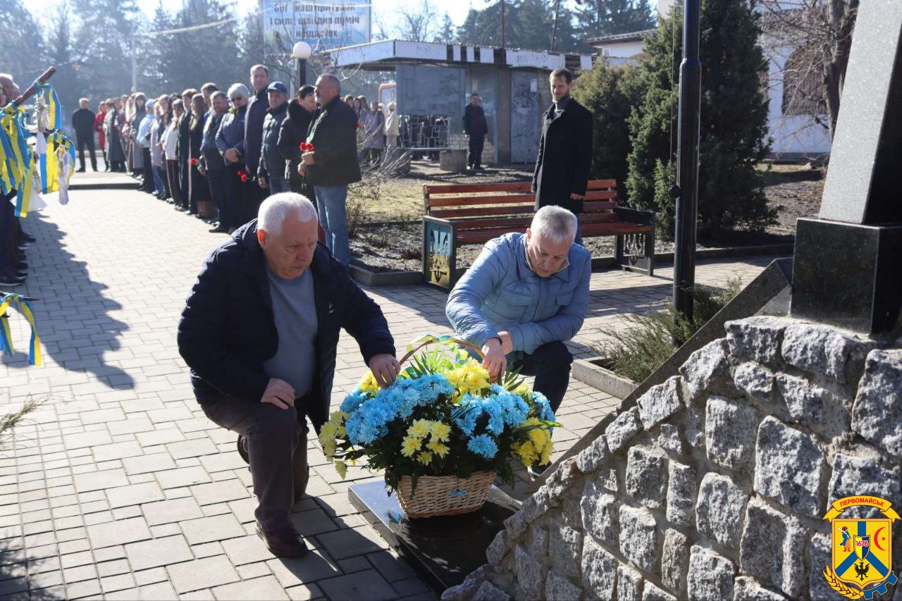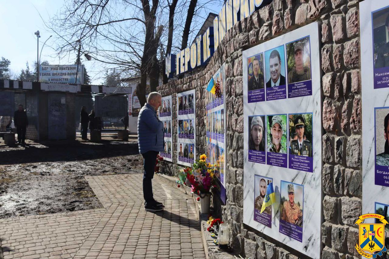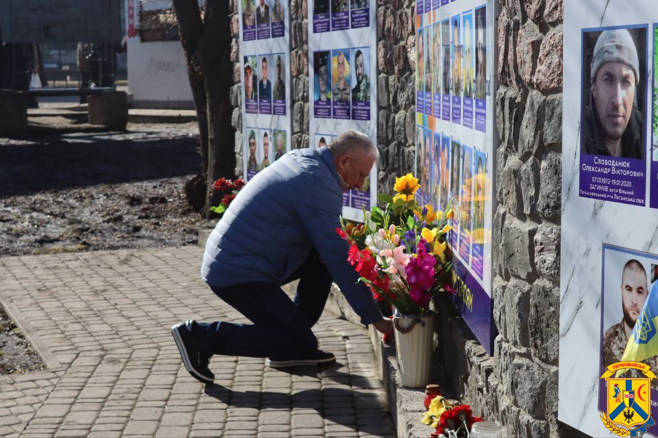 Заходи продовжилися біля дошки пам’яті «Герої не вмирають!» та меморіалу у сквері Небесної Сотні, де присутні також вшанували пам’ять загиблих захисників України.