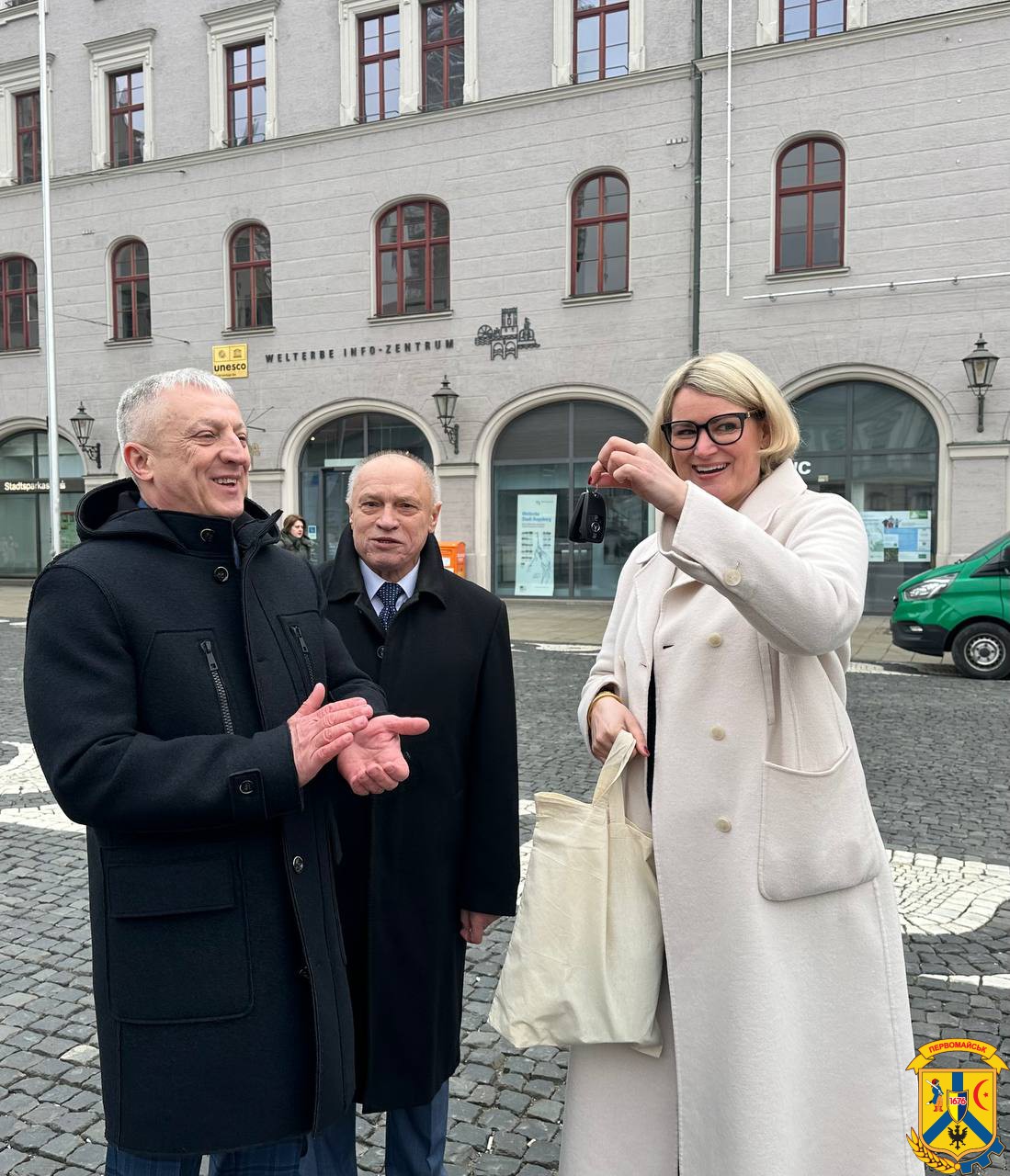 Ключовою подією візиту стала урочиста зустріч 5 березня на центральній площі міста, під час якої мер міста Аугсбург Єва Вебер передала міському голові Олегу Демченку ключі від автомобіля Mercedes-Benz Sprinter, наданого громаді як гуманітарну допомогу для потреб громади. Цей жест став символом підтримки та солідарності німецьких партнерів з українськими громадами у складний для країни час.