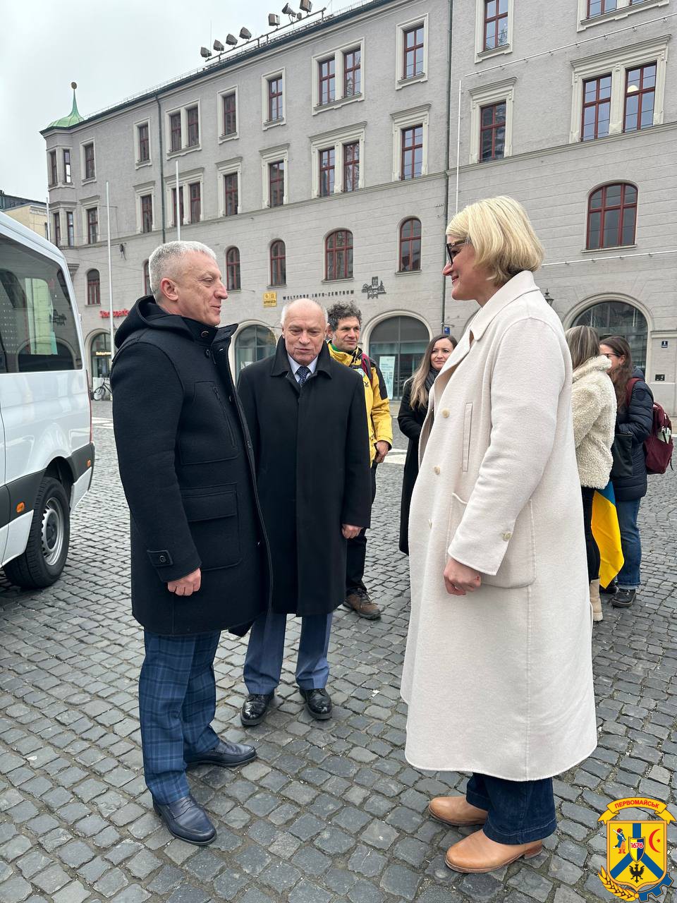 Важливою складовою програми стали зустрічі з представниками муніципалітету та громадських організацій міста, зокрема зі Спілкою українців в місті Аугсбург на чолі з Катериною Матей та Ігорем Майснером. Під час зустрічі сторони обговорили питання гуманітарної підтримки України та можливості подальшої співпраці. Від Спілки Первомайська громада також отримала генератор як гуманітарну допомогу.