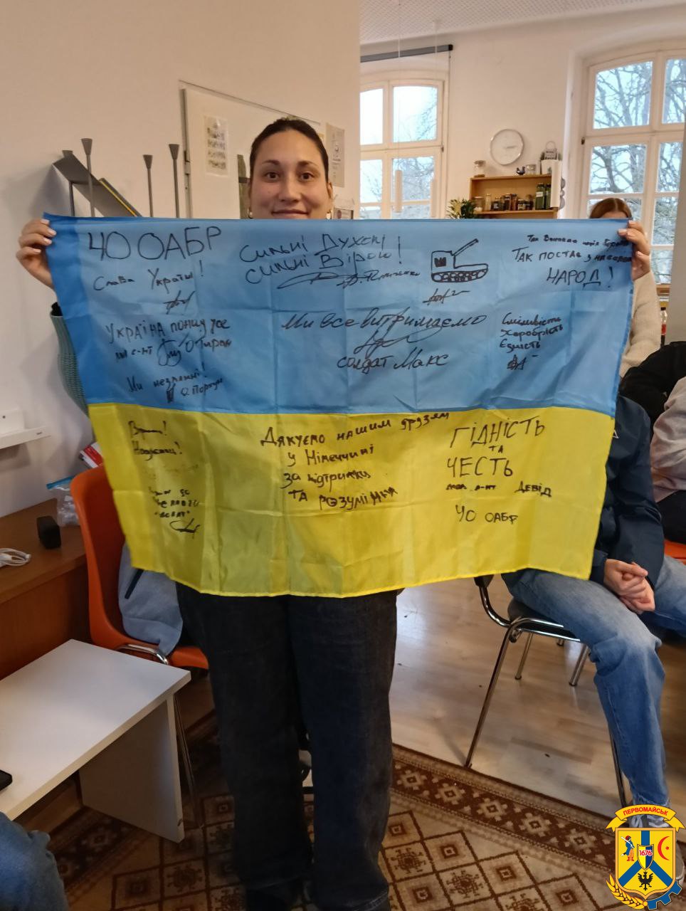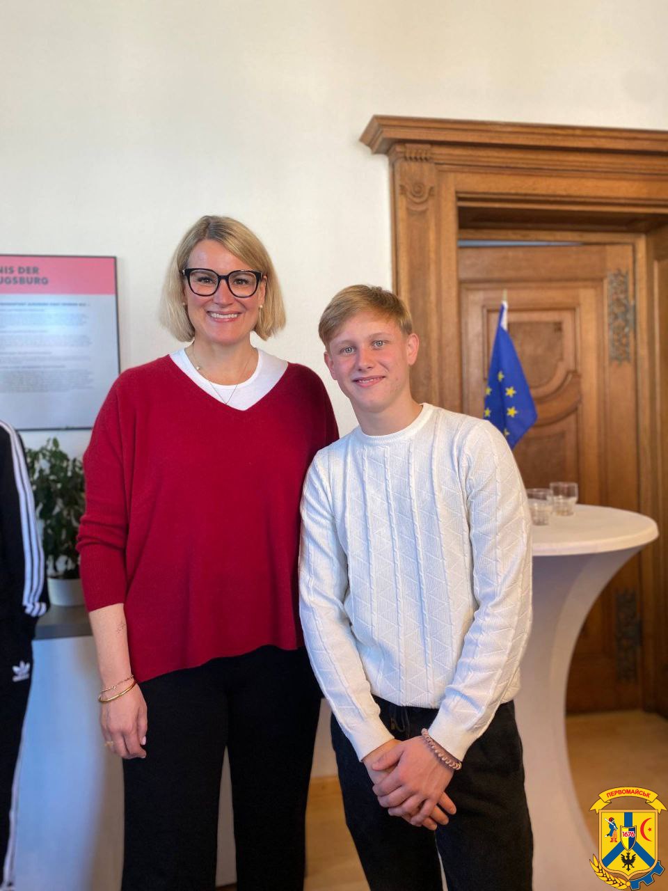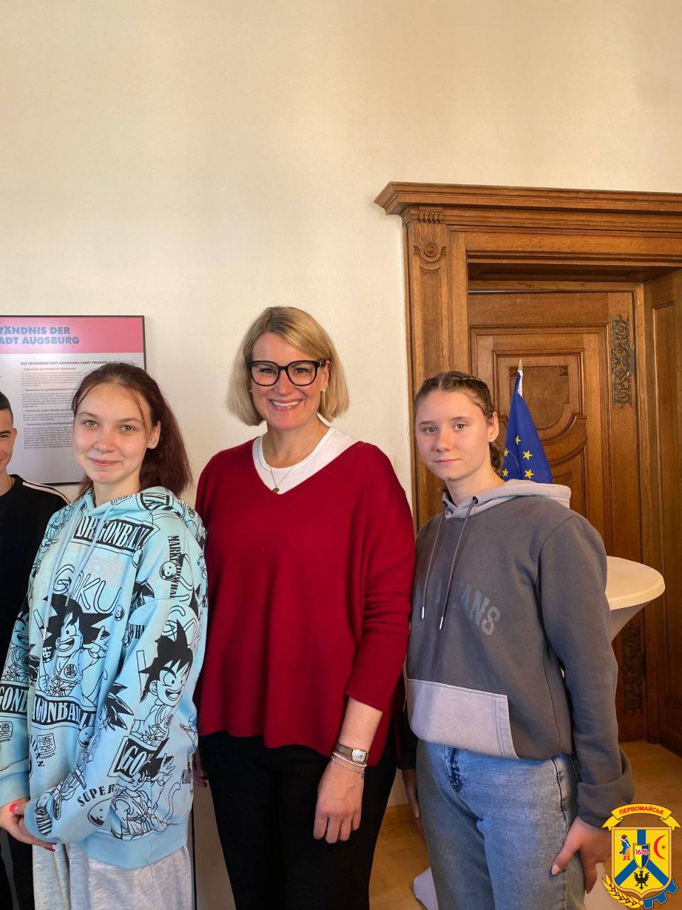 Особливою подією стала зустріч з обер-бургомістром міста Аугсбург Евой Вебер, яка відбулася безпосередньо в адміністрації міста. Діти передали міжнародним партнерам бойові прапори з України, підписані воїнами, а також символічні сувеніри, виготовлені власноруч. Окрім цього, від Первомайської громади адміністрації міста Аугсбург вручили пам'ятні подарунки з місцевою та державною символікою.