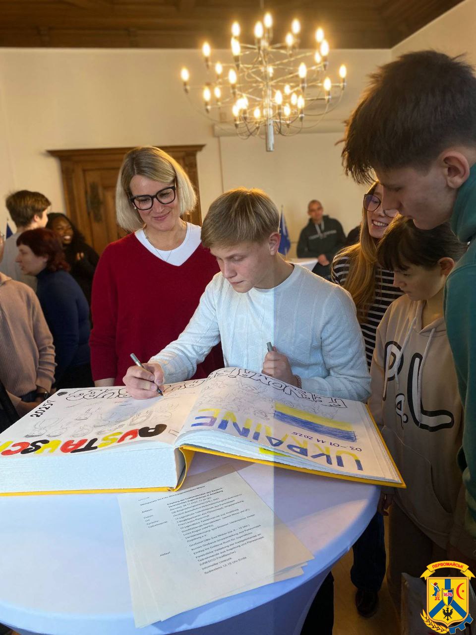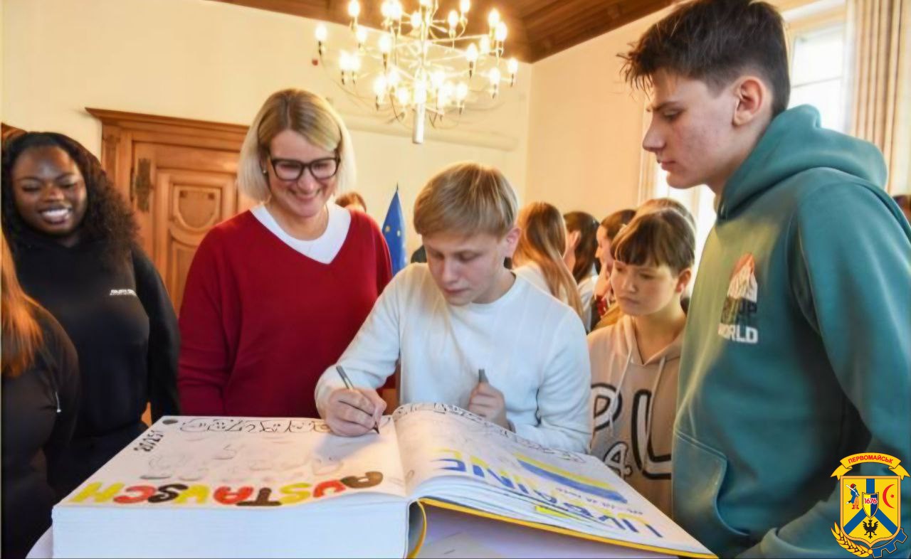 Також, під час зустрічі юні представники Первомайської громади разом з Евой Вебер залишили слова подяки та побажання миру й єдності у Книзі співдружності між Аугсбургом та Україною.
