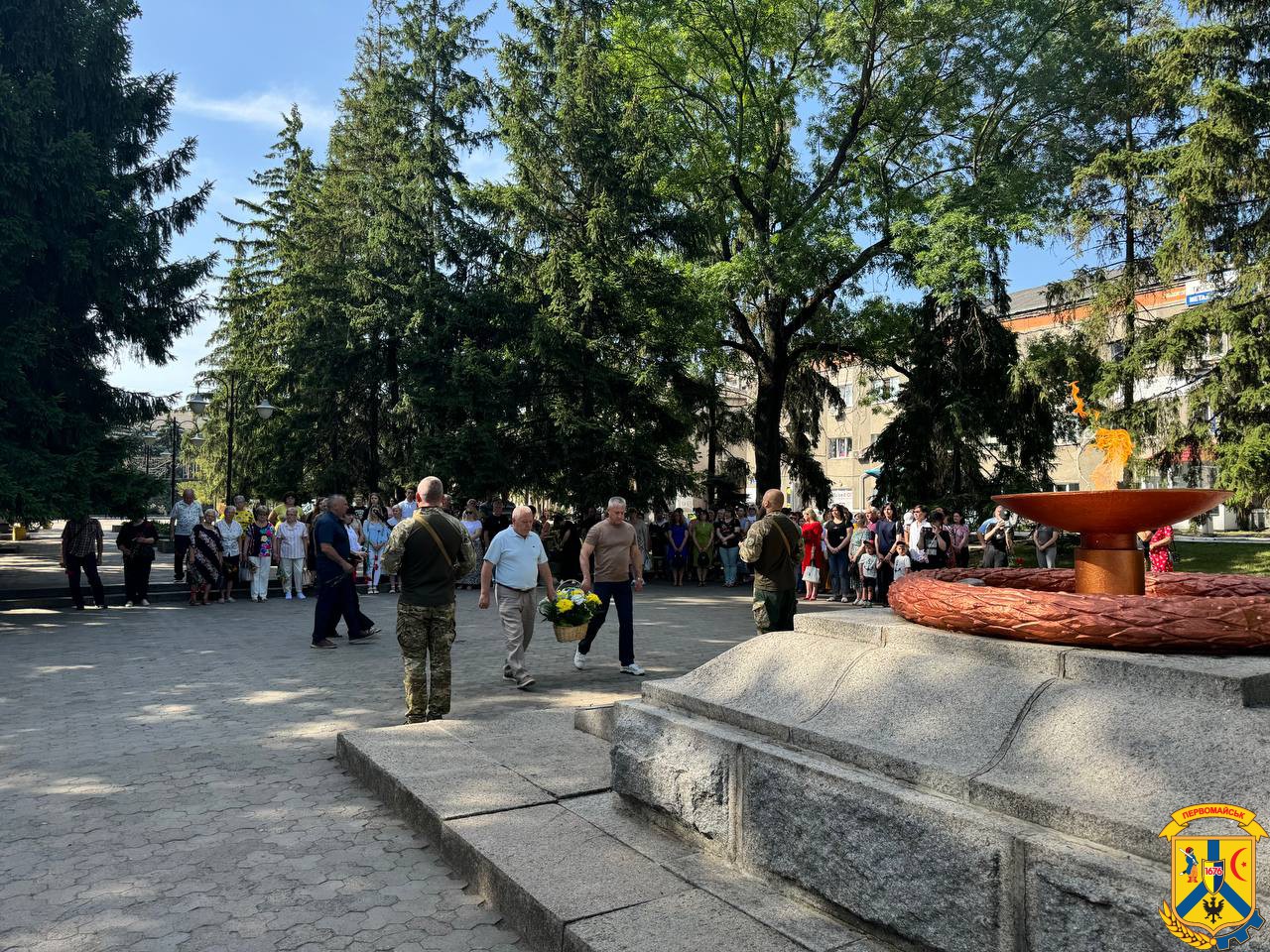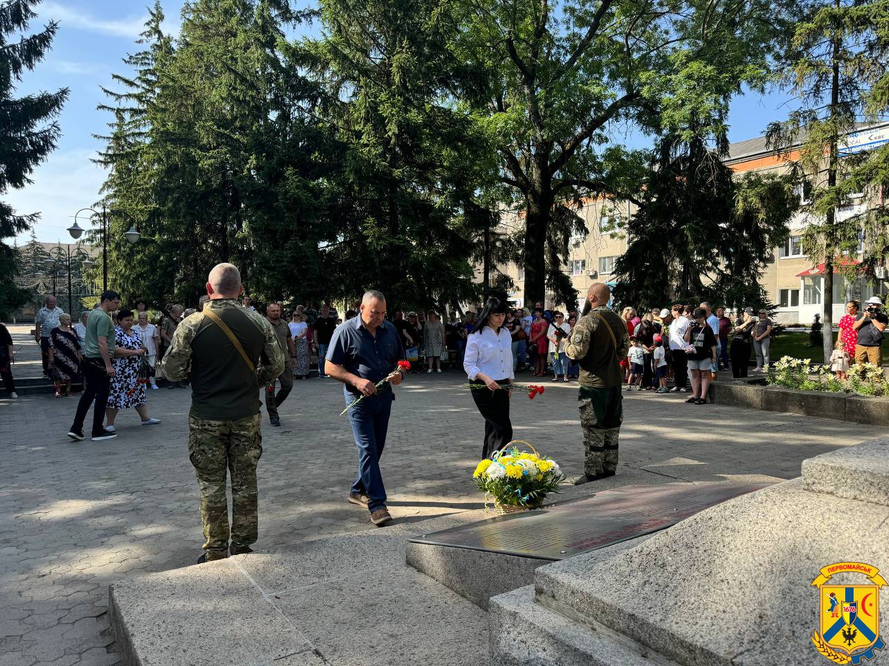 Учасники церемоніальних заходів хвилиною мовчання вшанували пам’ять всіх загиблих у роки Другої світової війни й поклали квіти до підніжжя Вічного вогню в сквері Перемоги. Окрім цього, на знак шани та поваги, поклали свічки пам’яті та квіти до стели у сквері Героїв Небесної Сотні та до Дошки Пам’яті на честь воїнів-земляків, які загинули в наші дні, обороняючи рідну землю від російських окупантів.