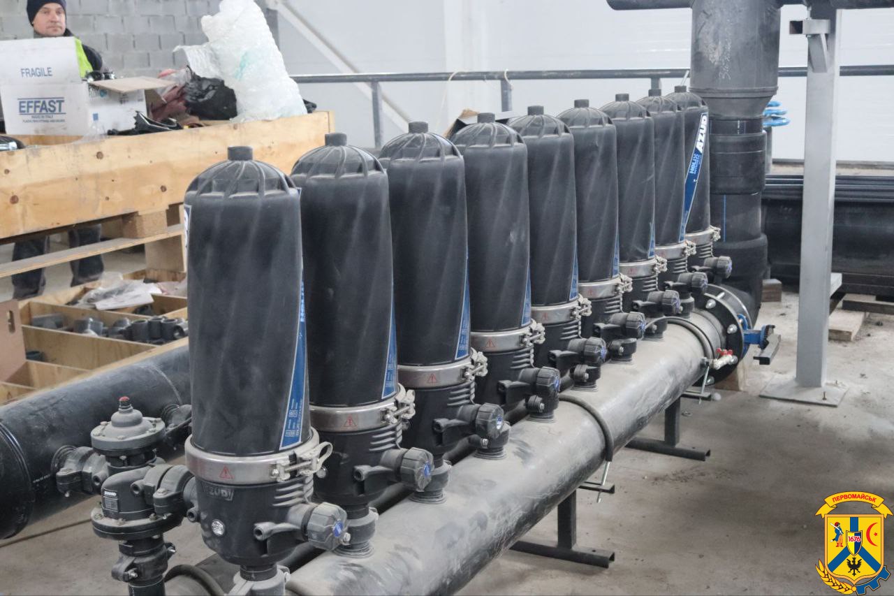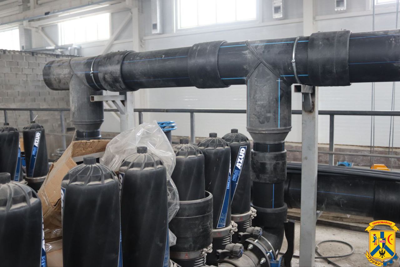 Під час огляду делегація пройшла основними виробничими та технічними приміщеннями. У багатьох залах уже змонтовано значну частину технологічного обладнання: встановлені фільтраційні колони, змонтовані трубопроводи великого діаметра, запірна арматура, вузли подачі та очищення води. Видно, що обладнання поступово набуває завершеного вигляду — змонтовані цілі лінії фільтрації, підключаються насосні вузли, триває зварювання та підготовка систем до пусконалагоджувальних робіт.