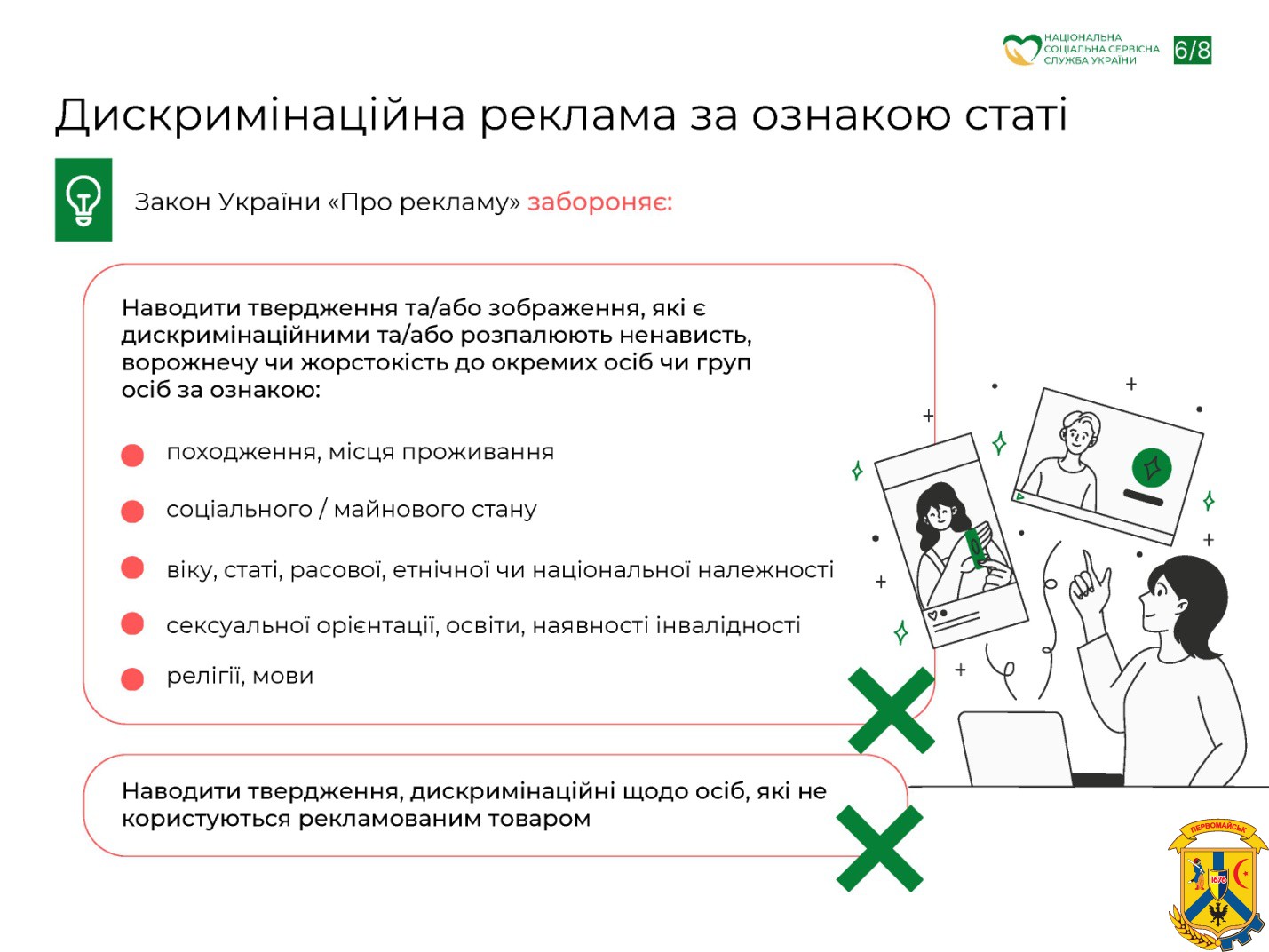 Дискримінація за ознакою статі – це ситуація, за якої особа та/або група осіб за ознаками статі, які були, є та можуть бути дійсними або припущеними, зазнає обмеження у визнанні, реалізації або користуванні правами і свободами або привілеями в будь-якій формі, встановленій Законом України «Про засади запобігання та протидії дискримінації в Україні», крім випадків, коли такі обмеження або привілеї мають правомірну об’єктивно обґрунтовану мету, способи досягнення якої є належними та необхідними