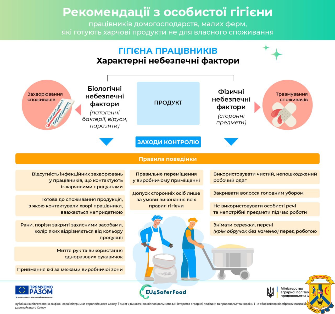 Вимоги до гігієни персоналу потужностей, який працює у зоні поводження з харчовими продуктами: