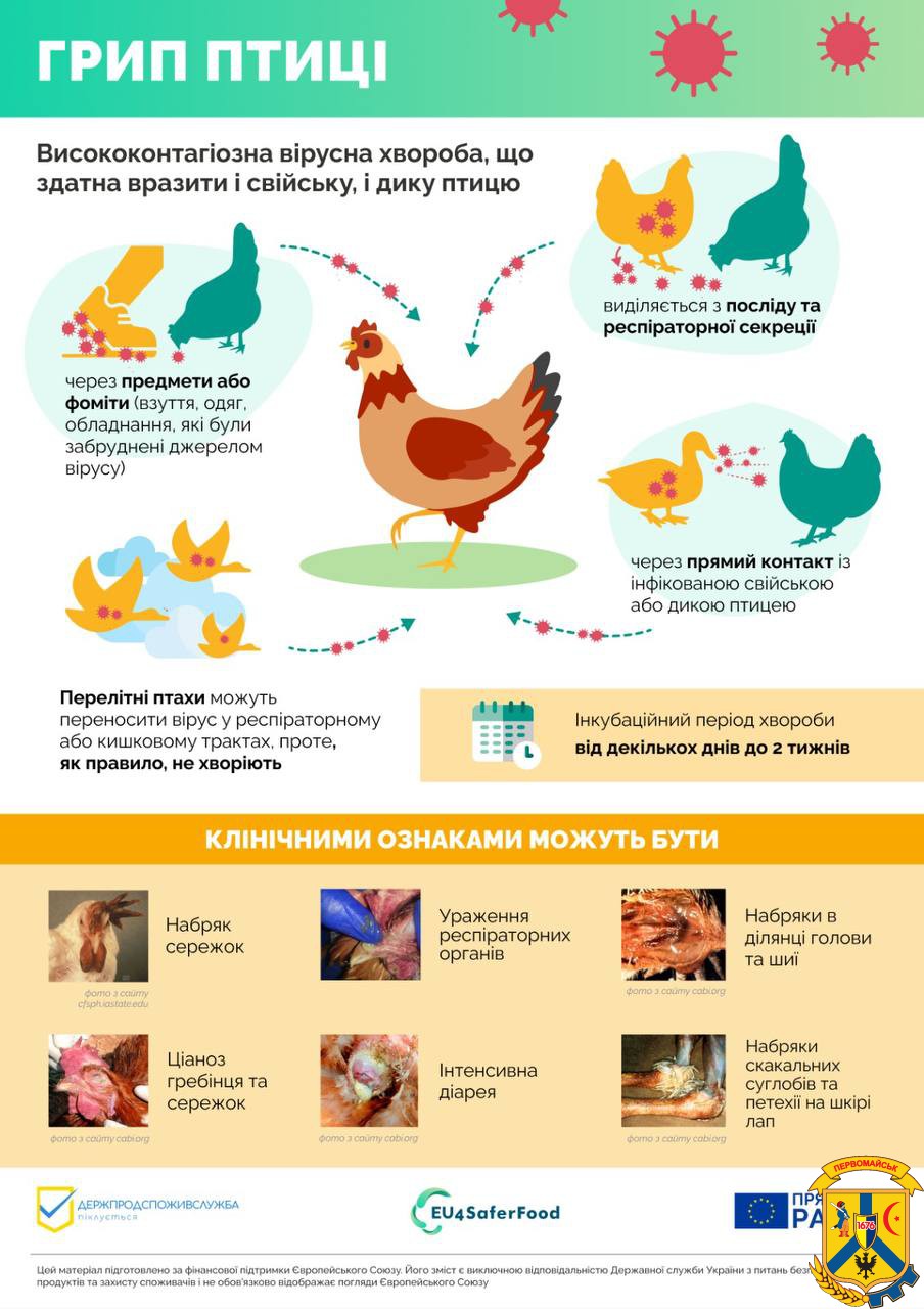 Вірус грипу птиці вражає курей, гусей, качок, індиків та іншу домашню й дику птицю. Його особливість — швидке поширення та блискавичний перебіг хвороби. Часто господар помічає проблему лише тоді, коли птиця раптово гине.