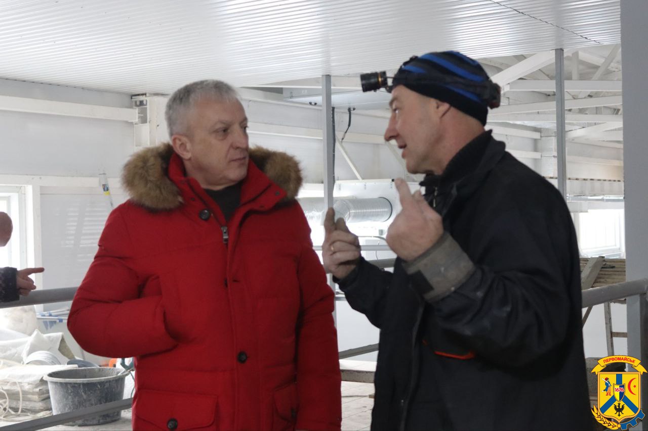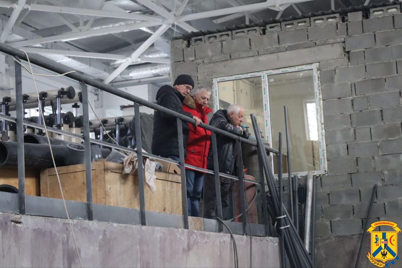 Під час візиту керівництво громади оглянуло основні виробничі приміщення та технічні зони, де тривають будівельно-монтажні роботи. Наразі об’єкт перебуває в активній фазі готовності: виконуються внутрішні оздоблювальні роботи в службових і технічних приміщеннях, триває монтаж дверей, облаштування коридорів, прокладання інженерних мереж та підготовка робочих зон для персоналу.