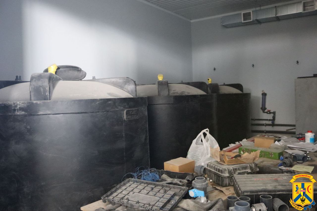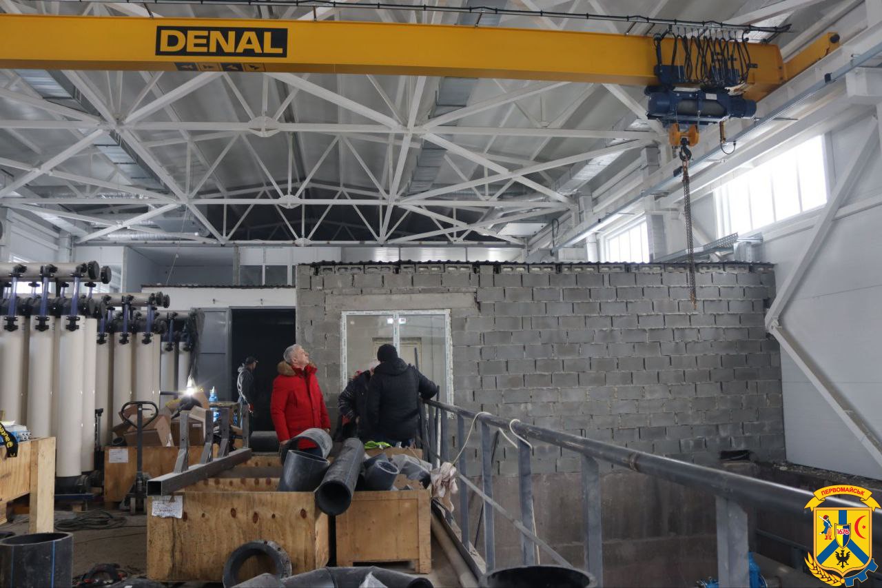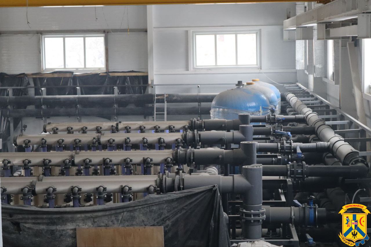 У виробничих приміщеннях змонтовано значну частину технологічного обладнання. Зокрема, вже встановлено фільтраційні колони, трубопроводи великого діаметра, запірну арматуру та вузли подачі й очищення води. Паралельно фахівці виконують зварювальні та монтажні роботи, здійснюють підключення насосного обладнання та готують системи до подальшого налагодження.