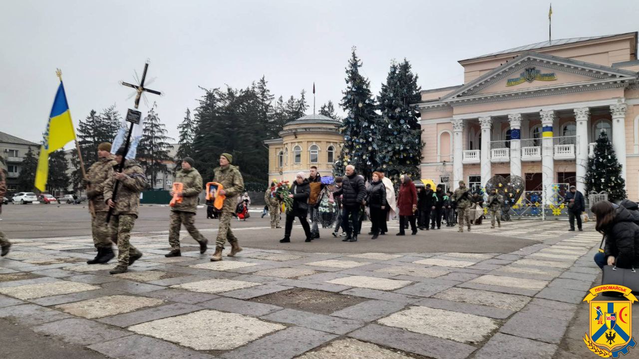 Побратими, земляки та знайомі провели Героя через центральну площу ім. Т. Г. Шевченка «живим коридором» пам’яті, віддаючи всі належні військові почесті. У тиші, що панувала довкола, відчувалася спільна молитва й глибока скорбота.