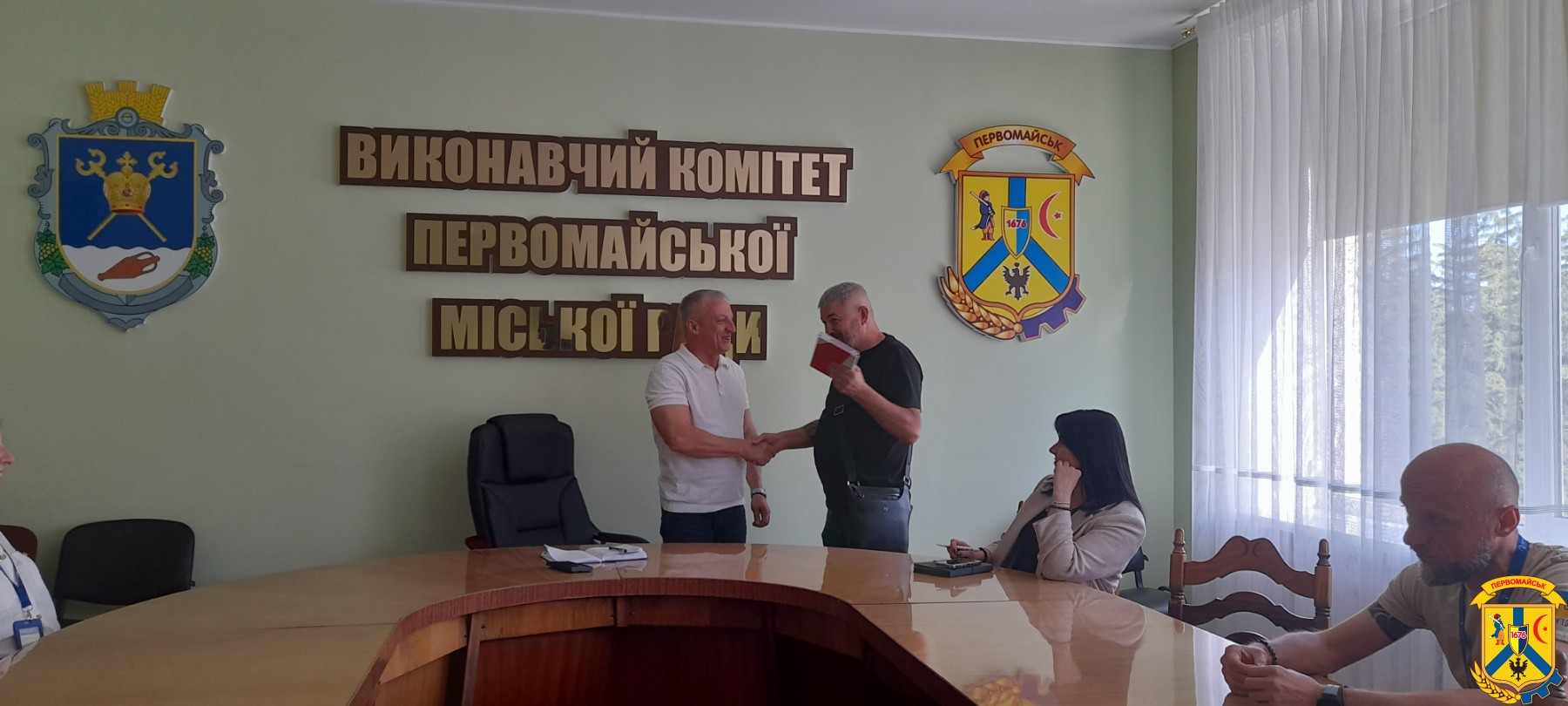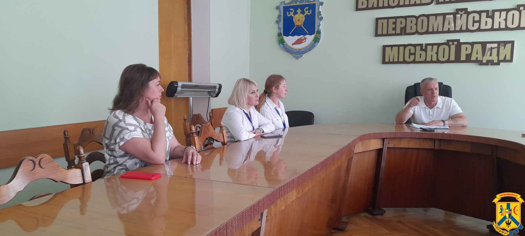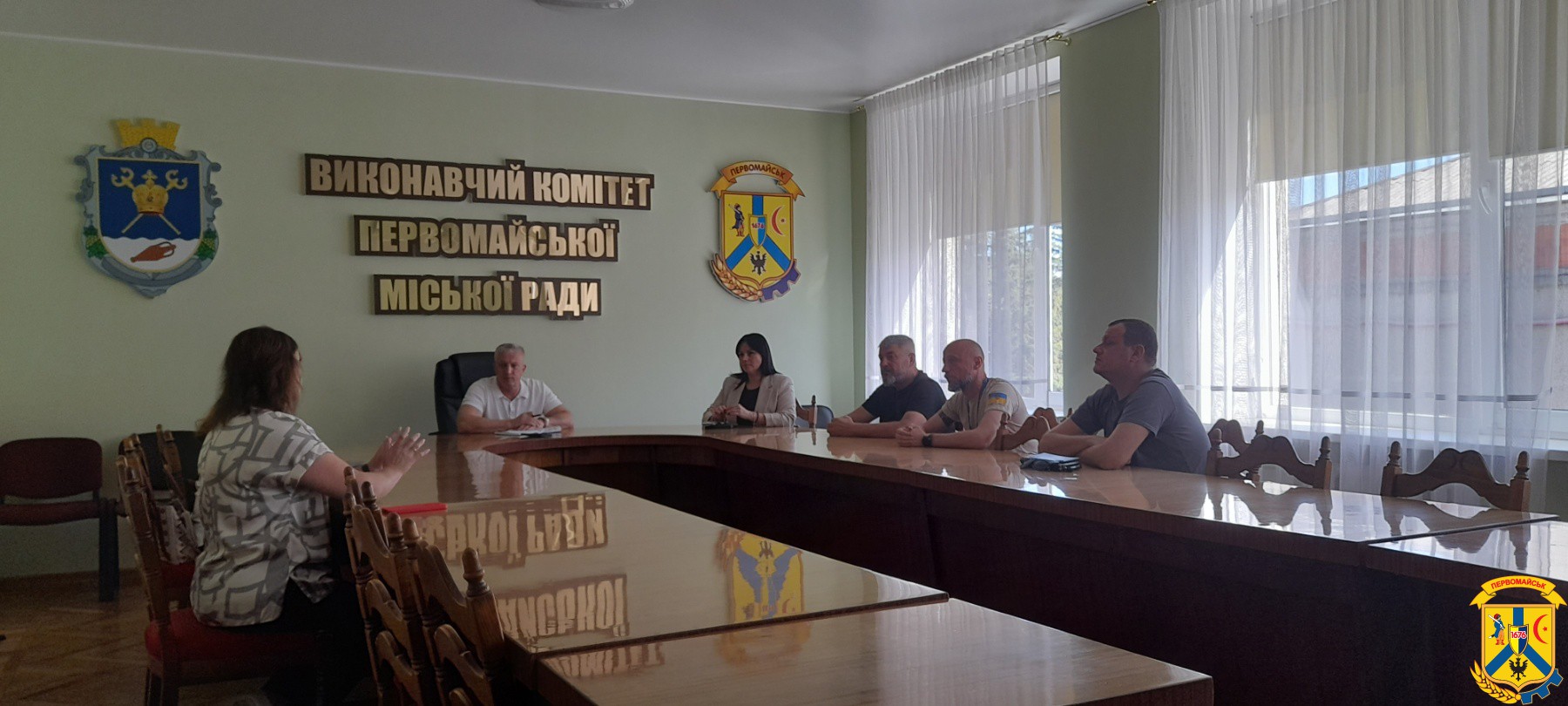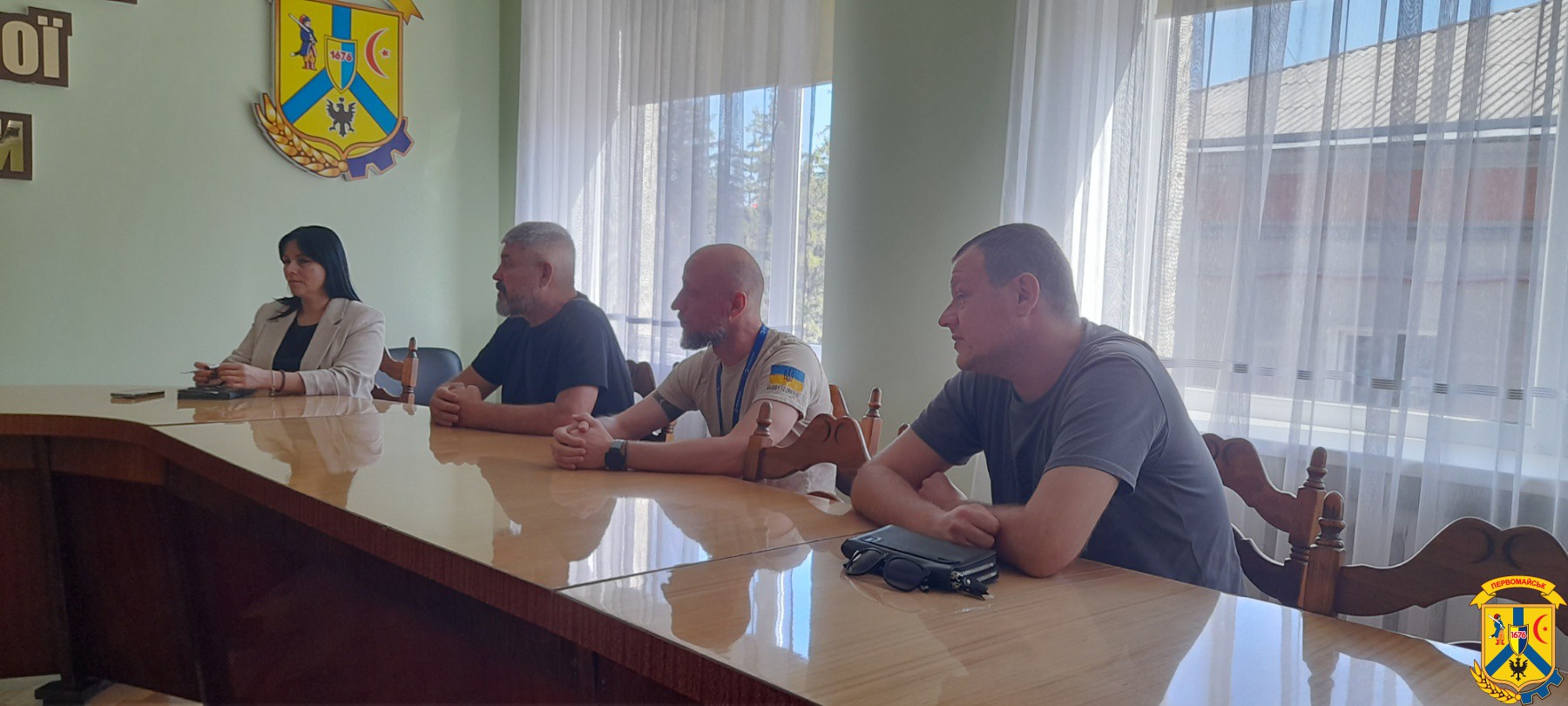 22 вересня 2025 року у приміщенні виконавчого комітету Первомайської міської ради відбулася робоча зустріч міського голови Олега Демченка з представниками громадської організації «Десяте квітня».