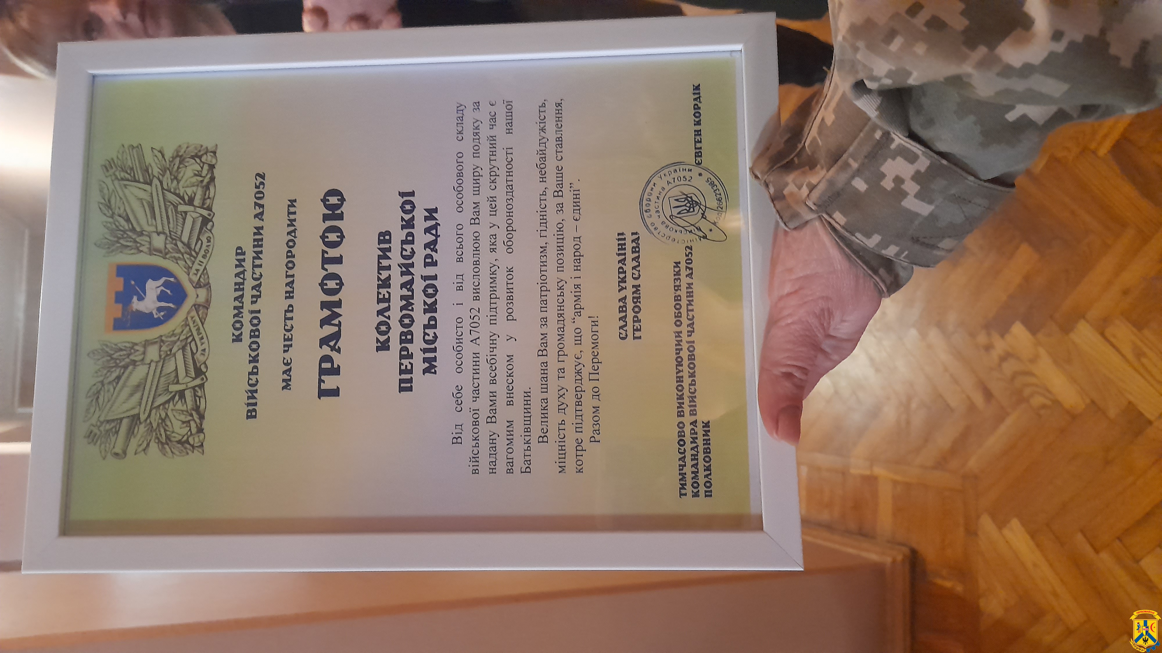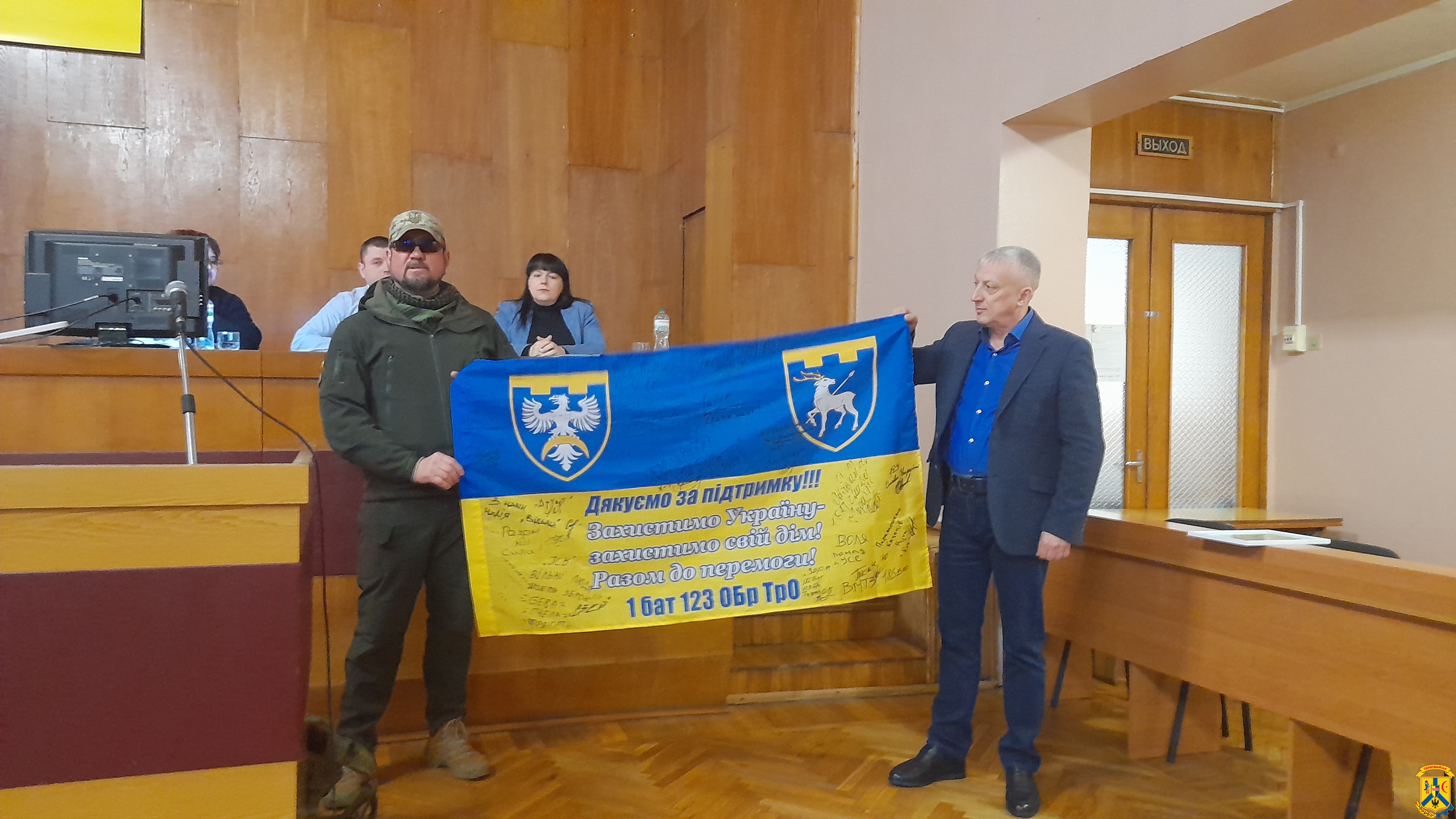 У ході пленарного засідання сесію відвідали військовослужбовці 123-ї окремої бригади територіальної оборони, які висловили щиру подяку колективу Первомайської міської ради за підтримку та допомогу, а також вручили грамоту й Державний Прапор України з підписами військових.