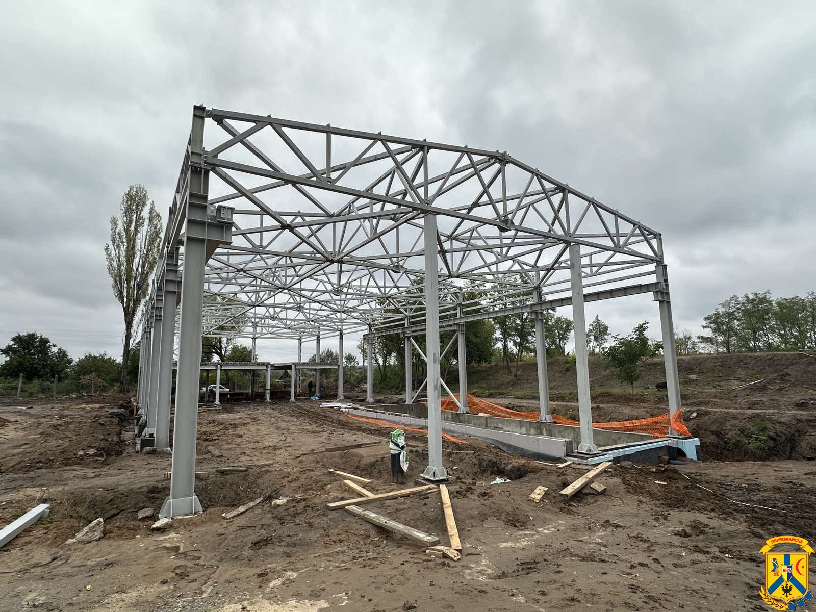 На майданчику вже зведені металеві конструкції майбутньої будівлі, облаштовані частини фундаменту, активно тривають земляні та бетонні роботи. Спецтехніка готує територію до наступних етапів. Атмосфера на будівництві робоча й динамічна — кожен елемент поступово складається у єдину конструкцію, яка стане важливою частиною системи водопостачання громади.