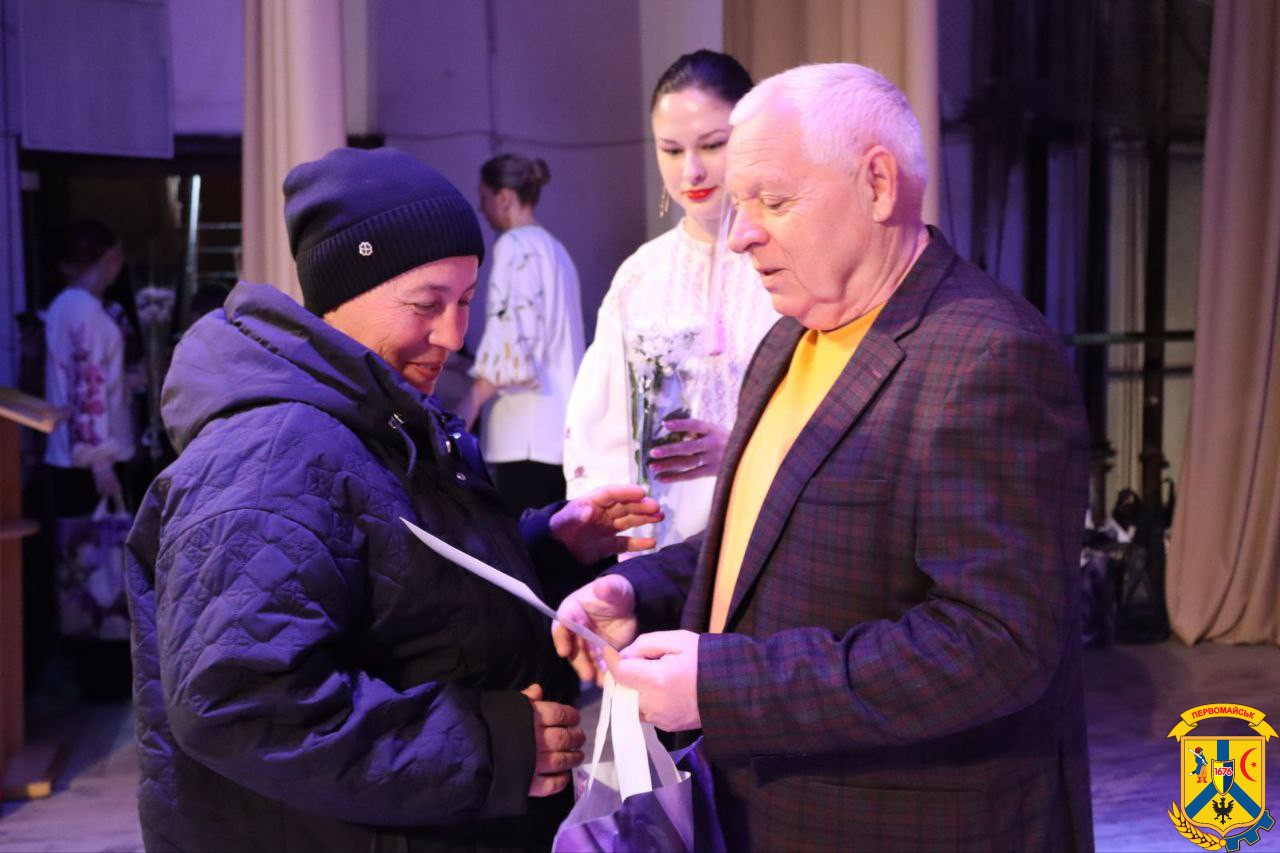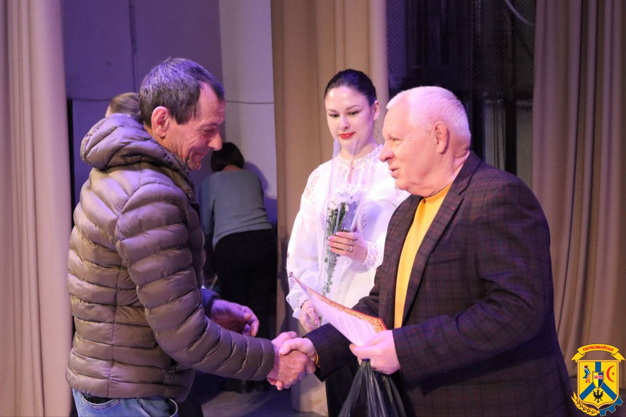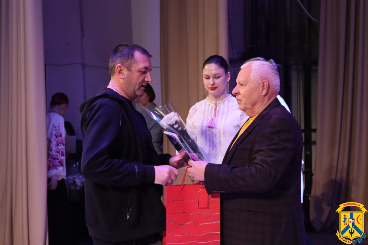 До святкової зали завітали добровольці, працівники житлово-комунальної сфери, представники влади та мешканці громади. Від імені очільника Первомайської міської територіальної громади Олега Демченка та всієї громади присутніх привітав перший заступник міського голови Дмитро Малішевський.