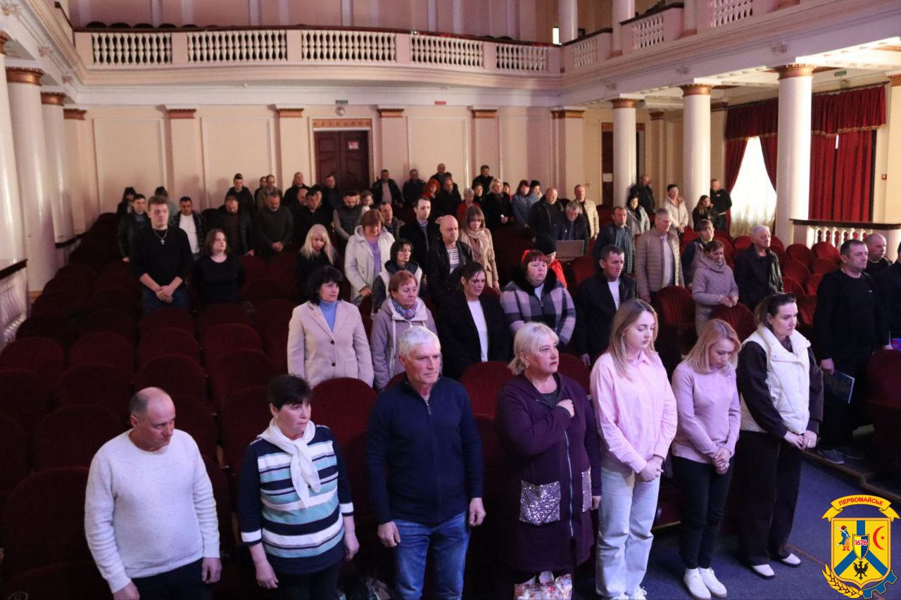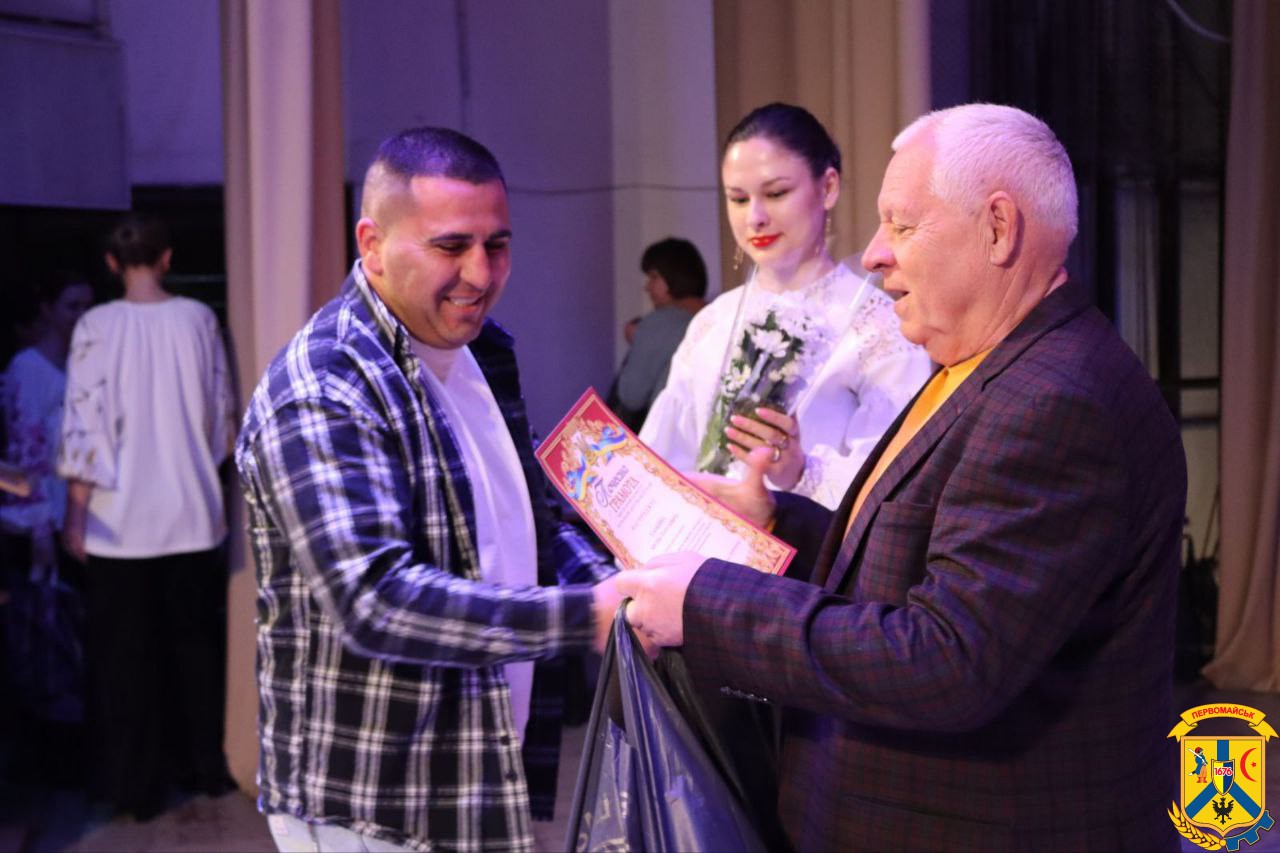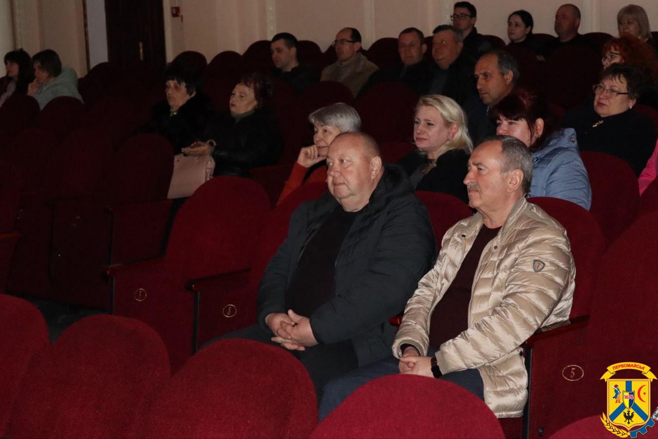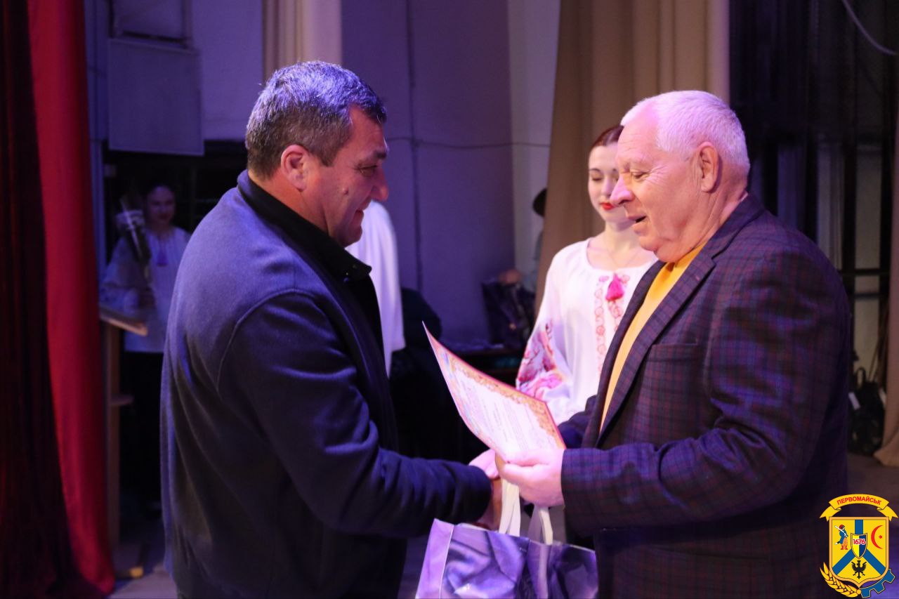 До святкової зали завітали добровольці, працівники житлово-комунальної сфери, представники влади та мешканці громади. Від імені очільника Первомайської міської територіальної громади Олега Демченка та всієї громади присутніх привітав перший заступник міського голови Дмитро Малішевський.
