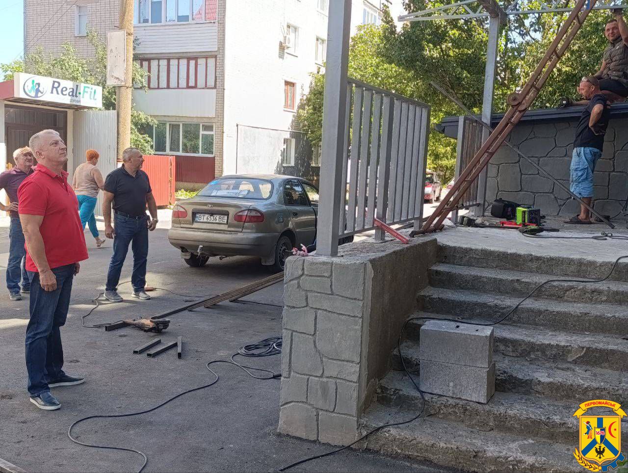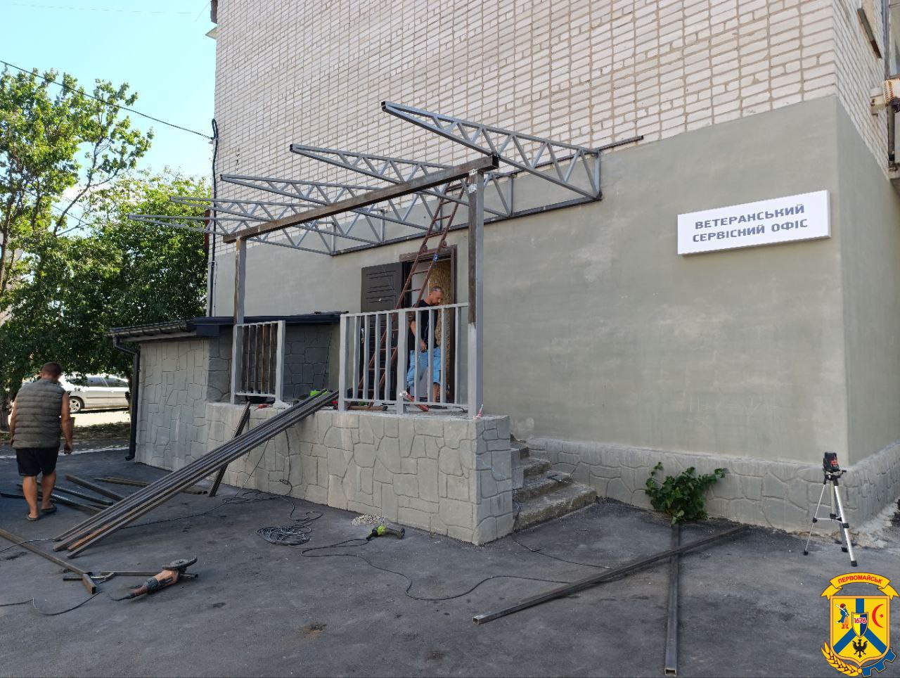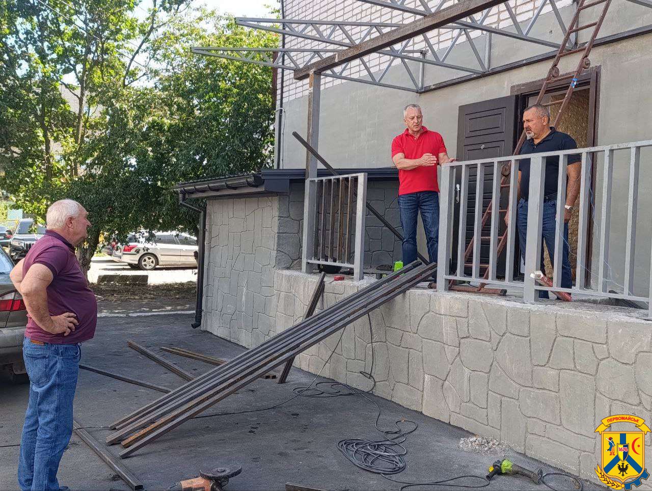 Разом із тим, тривають роботи з покращення доступності та комфорту цього простору. 11 серпня 2025 року міський голова Первомайської громади Олег Демченко, заступник міського голови Володимир Рябченко та директор територіального центру соціального обслуговування Сергій Грушанський оглянули облаштування вхідної групи та встановлення козирка.