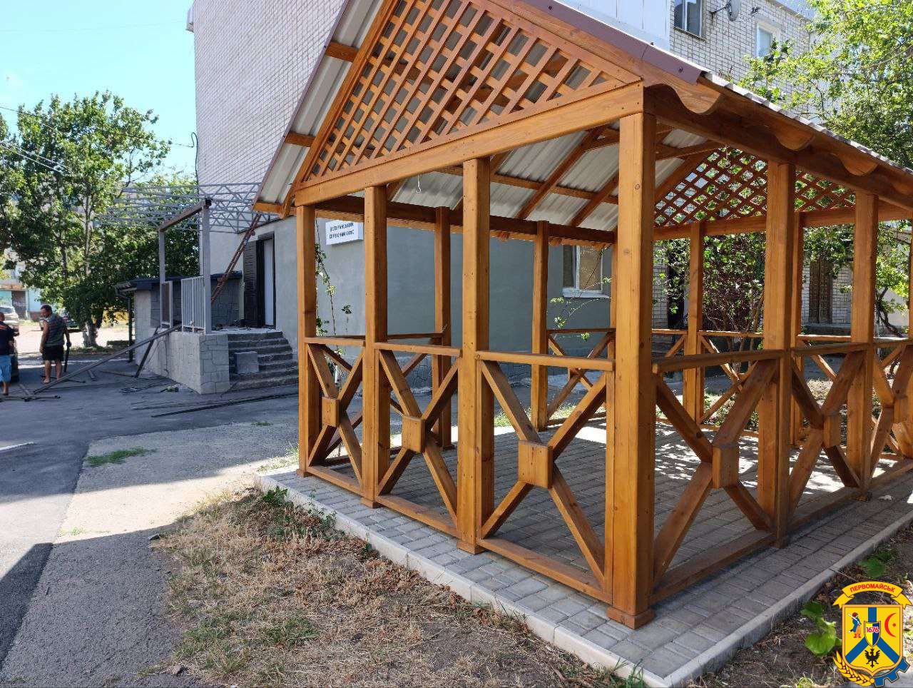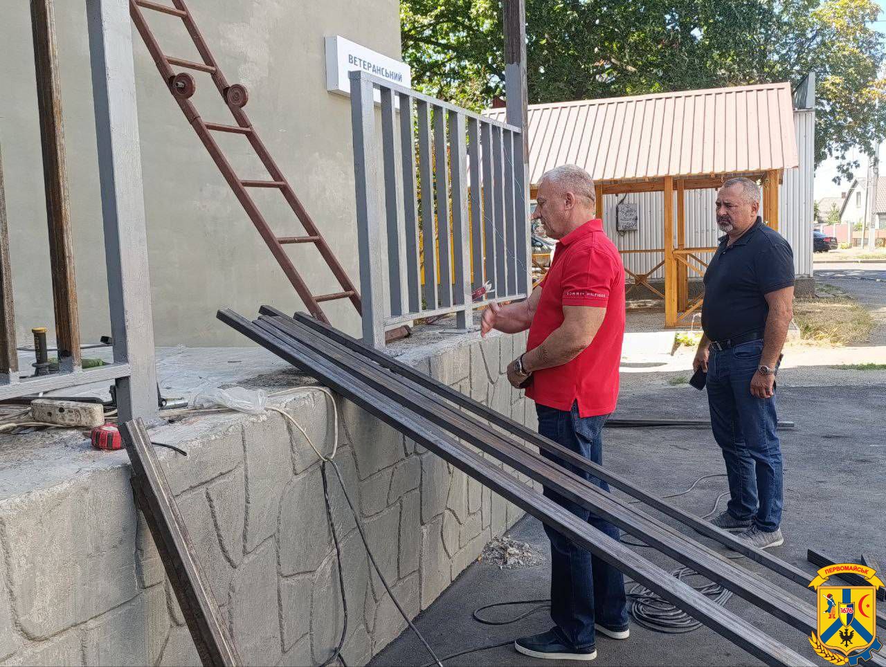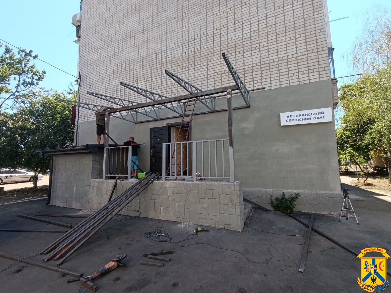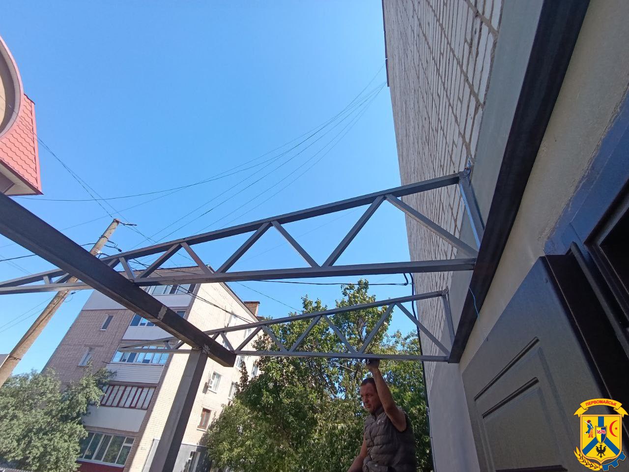 Разом із тим, тривають роботи з покращення доступності та комфорту цього простору. 11 серпня 2025 року міський голова Первомайської громади Олег Демченко, заступник міського голови Володимир Рябченко та директор територіального центру соціального обслуговування Сергій Грушанський оглянули облаштування вхідної групи та встановлення козирка.