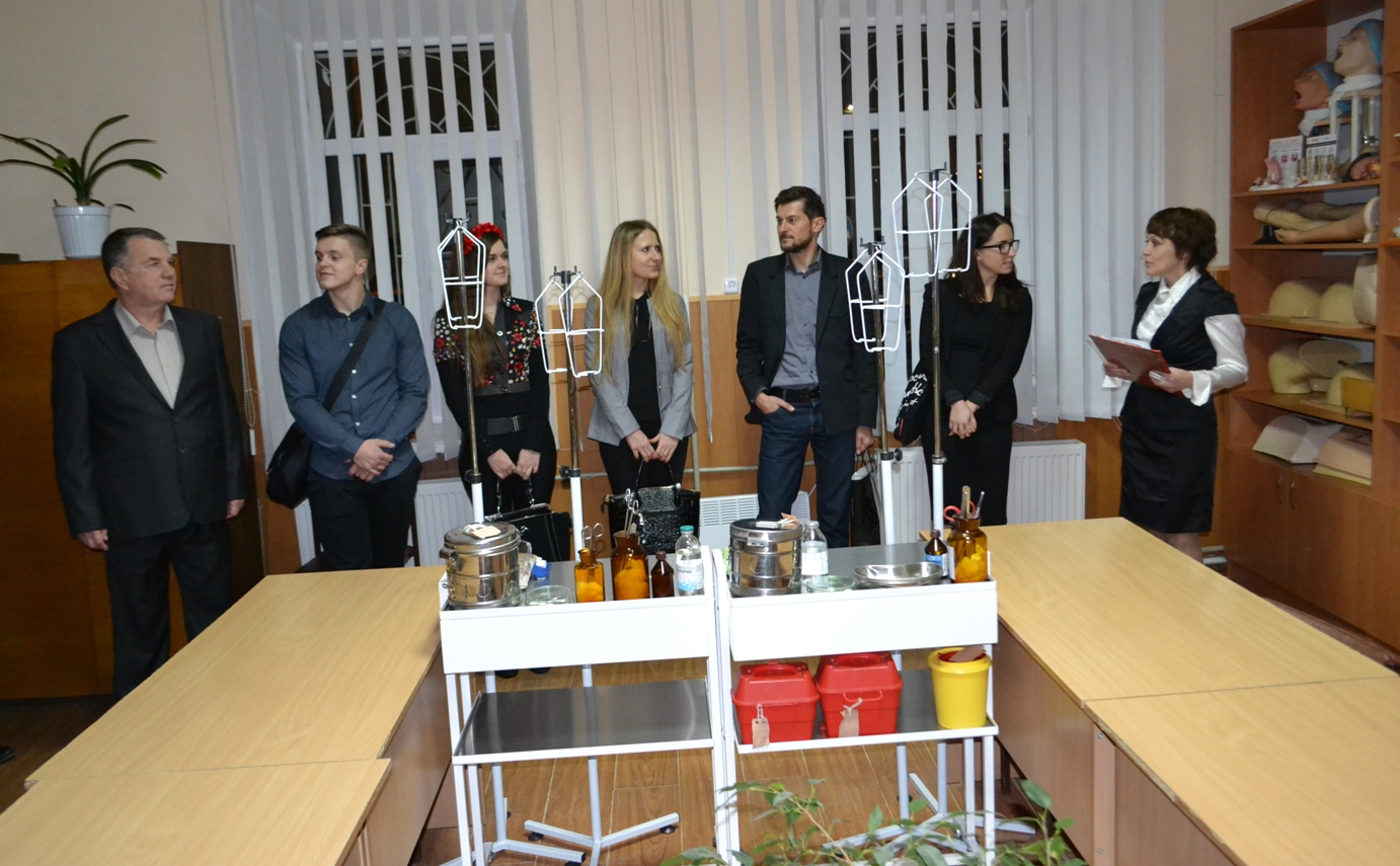 Перед початком офіційної частини зустрічі члени делегації, до складу якої увійшли: Славомир Рощенко – представник канцелярії міста Люблін (департамент міжнародної співпраці); Вікторія Герун – департамент стратегії (відділ співпраці з університетами); Лукаш Ласкавець з Люблінського Католицького Університету; Ольга Пелех з університету Економіки та Інновацій; Ліля Кучерук з Люблінської Політехніки; Тарас Бондаренко з Університету Марії Кюрі-Склодовської; Андрій Жедемецький – з Вищої школи підприємництва та адміністрування, здійснили цікаву екскурсію по медичному коледжу. Гостям продемонстрували робочі кабінети доклінічної практики з терапії, акушерства та гінекології, лабораторії анатомії, фізіології та патоморфології. Ознайомили делегацію з фондом музею історії коледжу, який налічує не лише експонати часів створення закладу понад 70-ти річної давнини та подій Другої світової війни, але й сучасні «трофеї» із зони проведення Антитерористичної операції, де зараз знаходяться багато колишніх випускників. Адже за часи роботи закладу було підготовлено більше 20 тисяч медичних працівників.