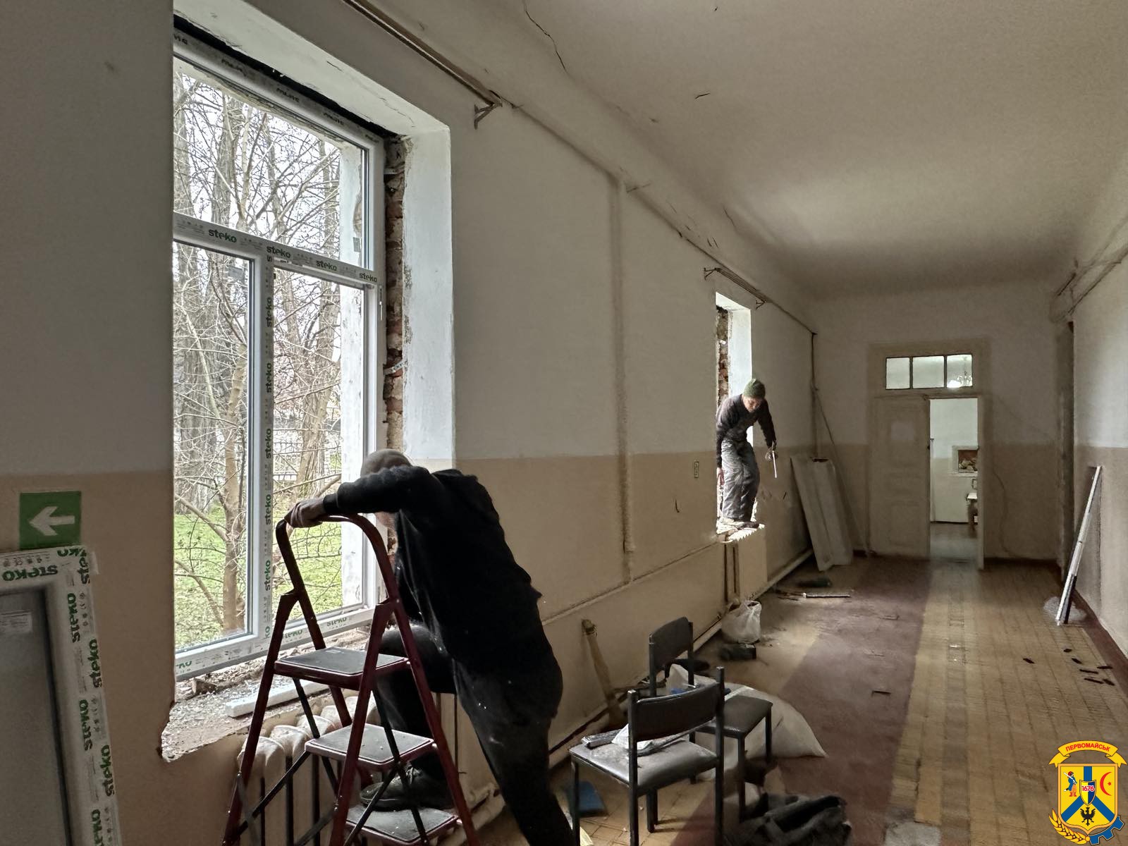 Одним із ключових етапів є заміна вікон та дверей, яким було понад 100 років. Відповідні роботи здійснюються відповідно до результатів проведеного тендеру. За підсумками відкритих торгів переможцем стало підприємство «Первосат», яке запропонувало найкращі умови та гарантії якості.