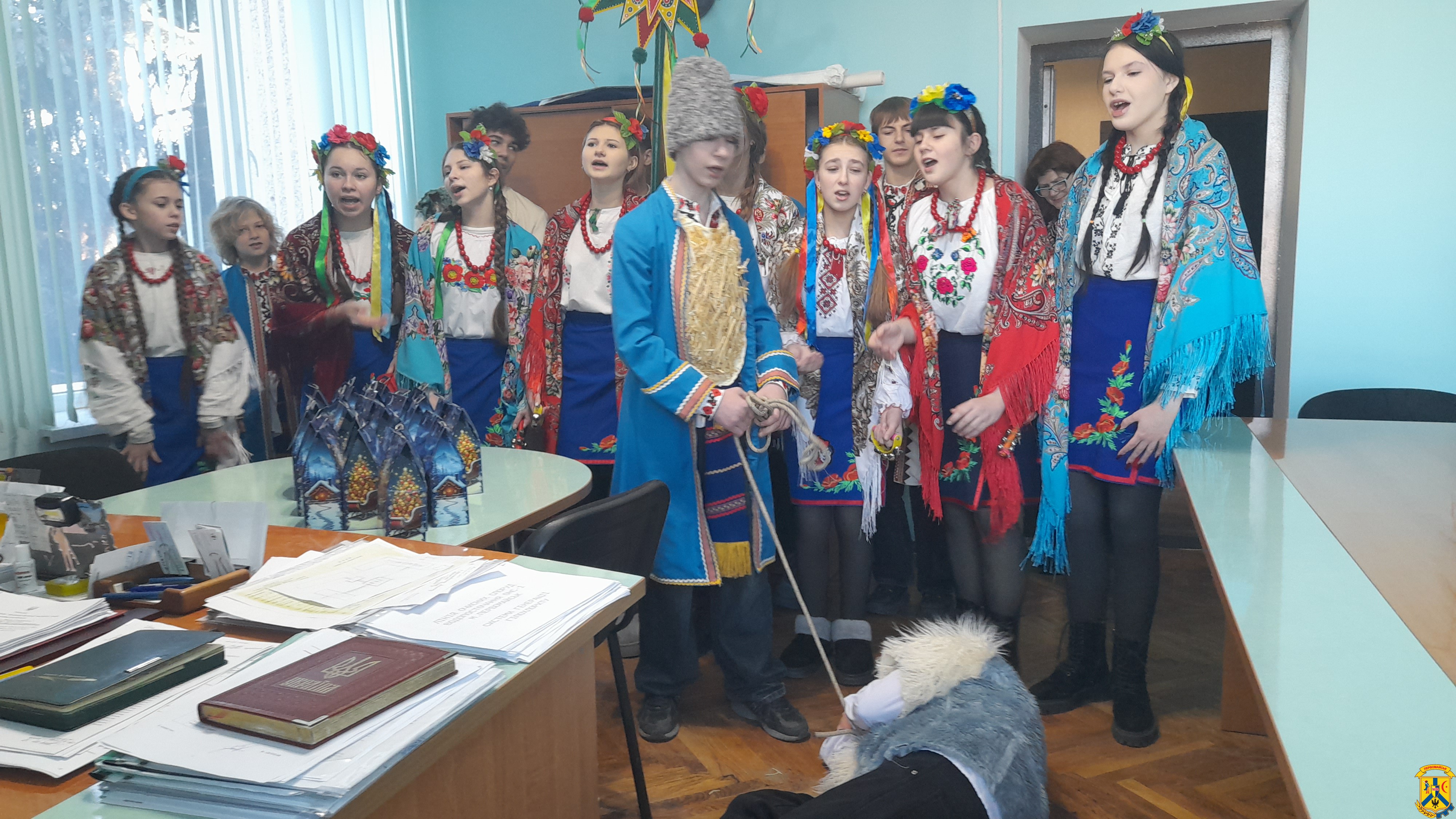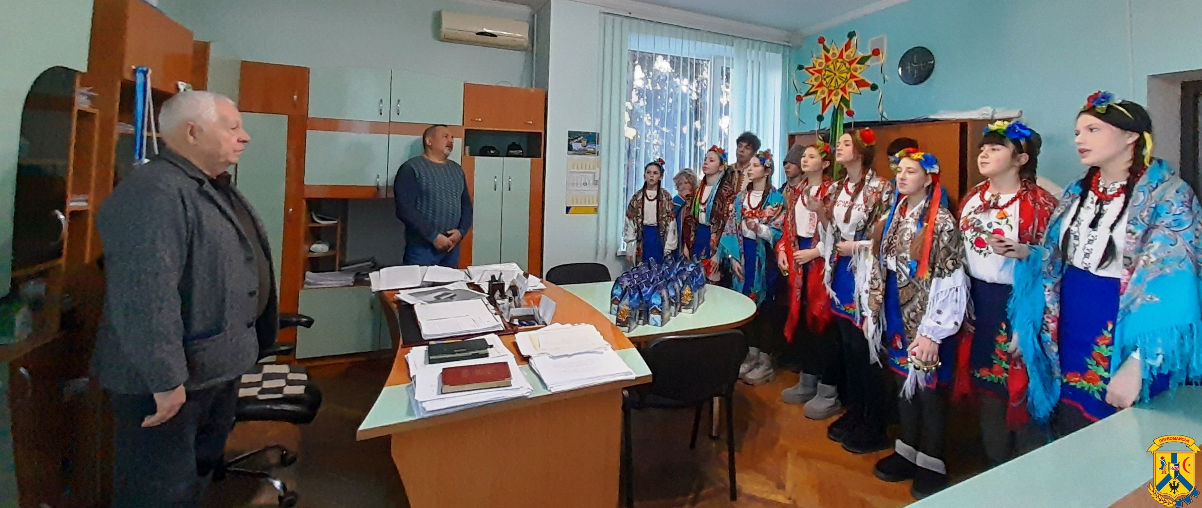 25 грудня 2025 року, за доброю різдвяною традицією, до Виконавчого комітету Первомайської міської ради завітали маленькі колядники — вихованці творчого колективу «Джерельце» Дитячо-юнацького центру національного відродження