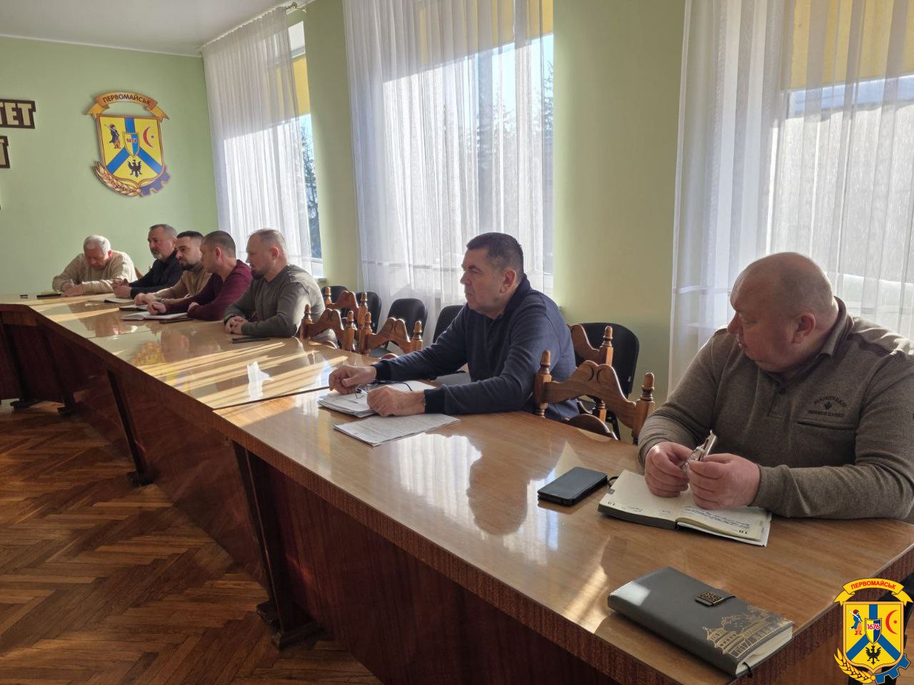 19 лютого 2026 року у залі засідань виконавчого комітету Первомайської міської ради відбулася ранкова робоча нарада під головуванням очільника Первомайської міської територіальної громади Олега Демченка